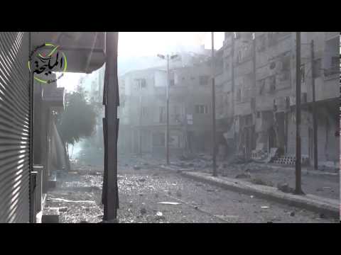 حلب مساكن هنانو - قصف بحاويات متفجرة 2014/05/04