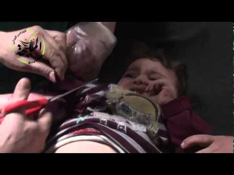 درعا إنخل- جرحى من الأطفال جراء القصف 2014/04/13