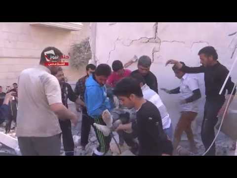 حلب الشيخ فارس- اللحظات الأولى للقصف 2014/04/13