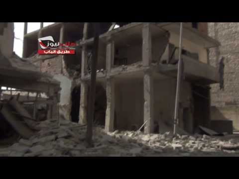 حلب - استهداف حي طريق الباب بصواريخ 2014/03/16