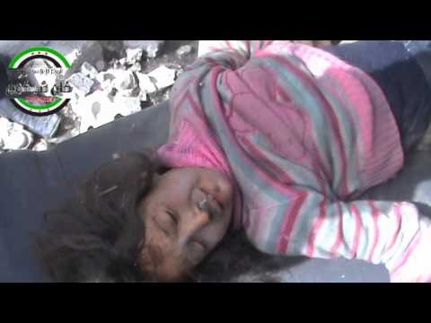اخراج طفلة من تحت الأنقاض بسبب قصف الميغ 2014/03/06