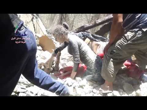عربين- مكان الغارة الجوية وإخراج الشهيد الطفل 2013/07/06