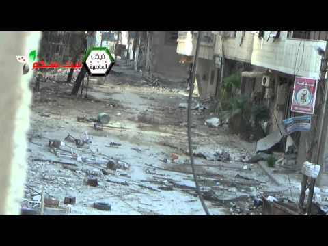 الدمار الذي لحق بشارع ال30 في مخيم اليرموك 2013/06/29