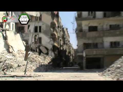 إسقاط مئذنة جامع الأمين بقذائف مدفعية - معضمية الشام 2013/07/01