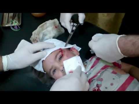 داريا المشفى الميداني - طفلة مصابة بالقصف العشوائي 2013/05/21