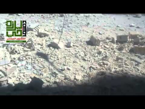 حمص أبنية شارع الميماس مدمرة بالكامل بسبب قصف كلاب الاسد بالمدفعية وراجمات الصواريخ 27-4-2013