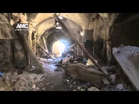الدمار الكبير في سوق الحمام الذي يقع في سوق حلب الآثري 2013-04-24