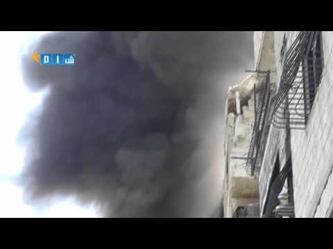 شام ريف دمشق زملكا احتراق منازل المدنيين و آثار الدمار الهائل جراء القصف 13-4