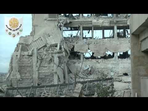 حلب - معركة فك الأسرى - الدمار المرعب في مشفى الكندي جراء الاشتباكات والمجاهدين داخل المبنى 2013/04/09