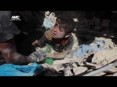 إنقاذ الطفل "أحمد" من تحت الانقاض20/6/2016