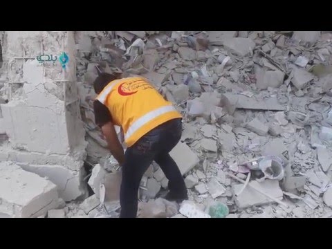 حلب- اخراج طفل على قيد الحياة 28/04/2016